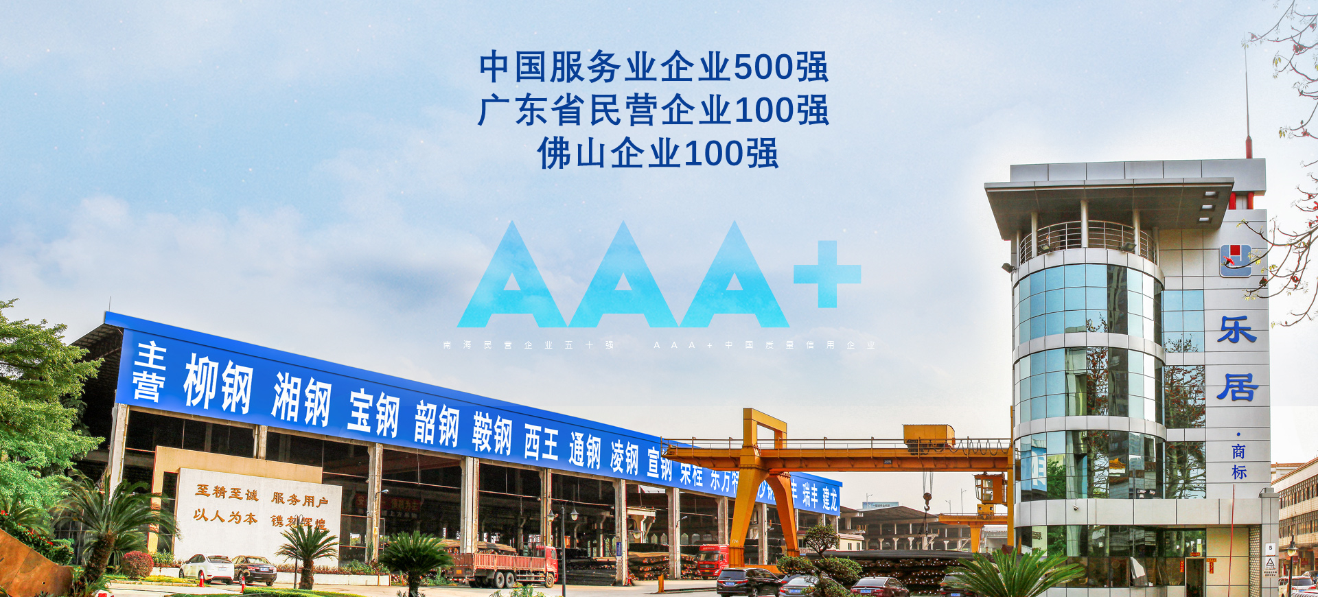 集團母公司廣東樂居商貿集團有限公司成立至今已有30多年,是一家代理銷售國內大型鋼廠如柳鋼、寶武、湘鋼等品牌產品,集鋼材銷售、倉儲、加工、配送、研發服務于一體,現貨齊全的鋼材全產業鏈綜合服務商。企業規模大,實力雄厚,自有資金充裕,在東莞、里水、九江、樂從均擁有自己的獨立倉庫,自有倉庫占地超330畝,倉儲容量達55萬噸。